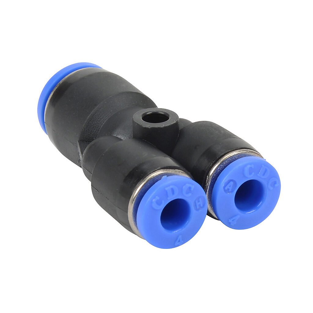 URY6M-4M - NITRA pneumatic push-to-connect fitting, union Y reducer, thermoplastic (PBT) body, 6mm tube to (2) 5/32in (4mm) tube connection(s). Package of...