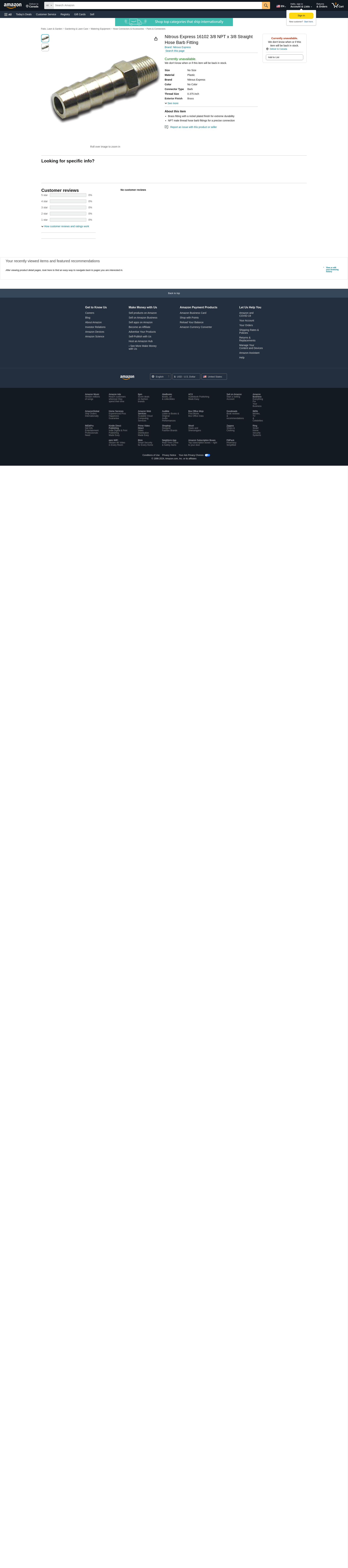 Nitrous Express 16102 3/8 NPT x 3/8 Straight Hose Barb Fitting
