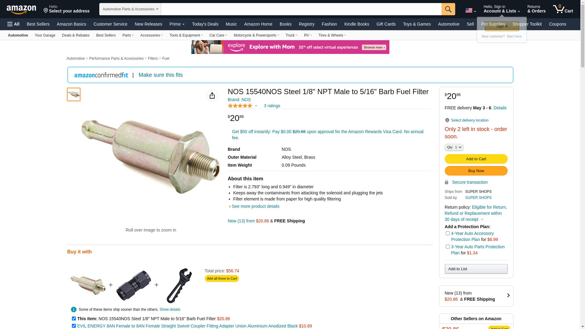| Summit Racing | NOS-15540NOS | 1 | -2 | 1 | 1 @ $17.06 |