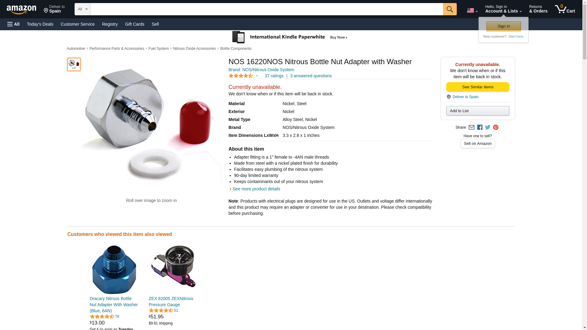 -4AN Nitrous Bottle Nut Adapter & Washer;<br><br>-4AN NOS Bottle Nut Adapter & Washer;
