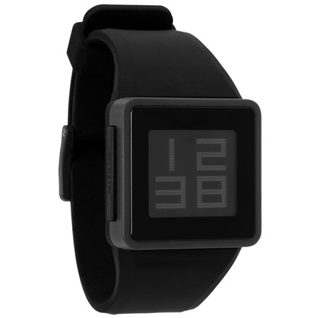 Nixon A137007 The Newton Digital men's watch features a 37mm wide and 14mm thick custom injection molded grey polycarbonate plastic case with a fixed bezel and dual gasket molded function pusher. Nixon A137007 is powered by an accurate quartz movement. This stylish watch also features a sharp looking black digital positive or negative LCD dial with silver tone Arabian digital number along with the day, date, and light display functions, scratch resistant hardened mineral crystal and water resistant to 30 meters. Nixon A137007 is equipped with a 33mm wide custom injection molded black rubber strap with a buckle clasp. Nixon A137007 men's The Newton Digital black dial black rubber strap watch is brand new and comes in an original Nixon gift box and is backed by a 2 years store warranty.