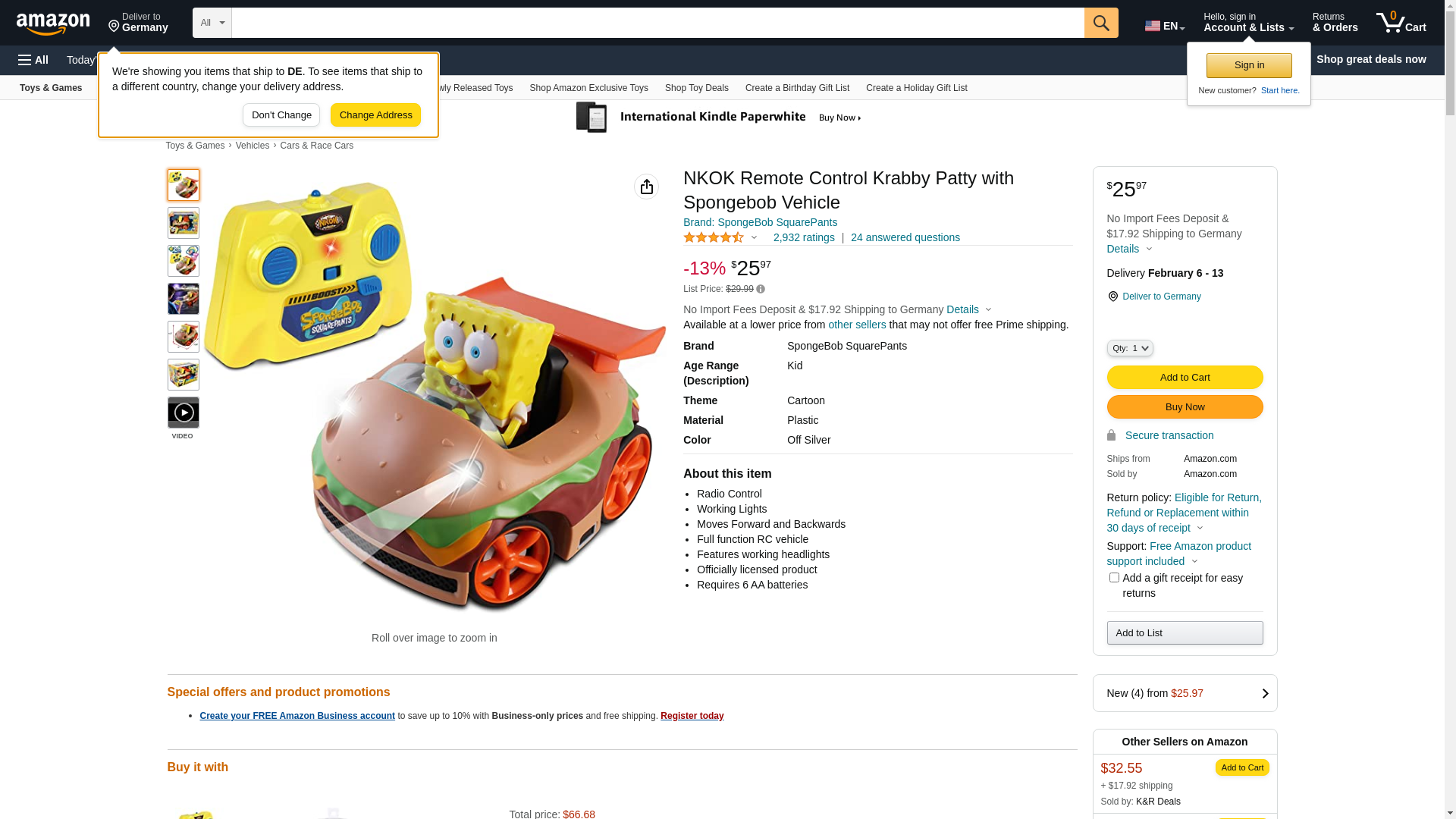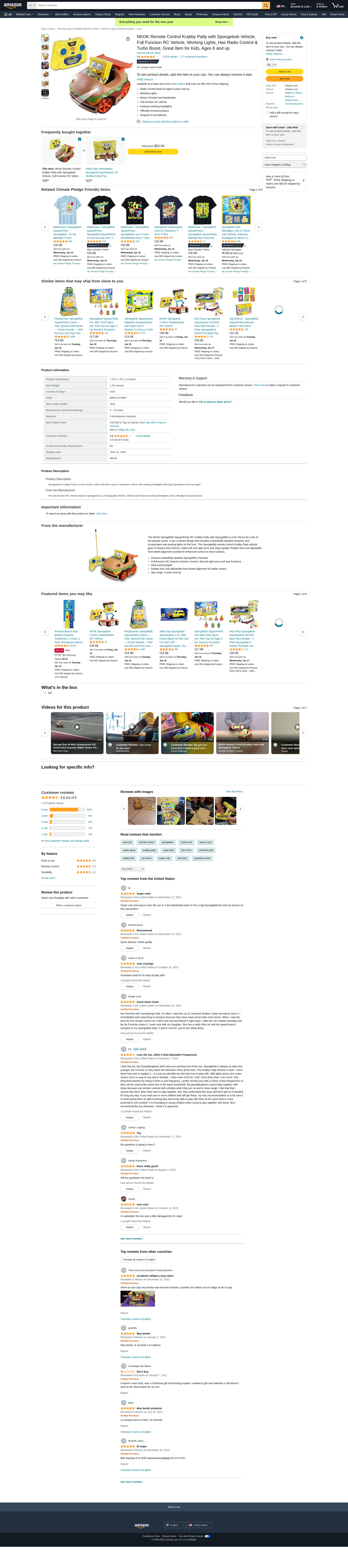 NKOK Remote Control Krabby Patty with Spongebob Vehicle, Full Function RC Vehicle, Working Lights, Has Radio Control & Turbo Boost, Great Item for Kids, Ages 6 and up