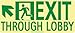 - Safety Signage: this sign is designed to instruct people to exit a facility through its lobby. It is often used to clearly communicate emergency exit procedure in commercial and public buildings