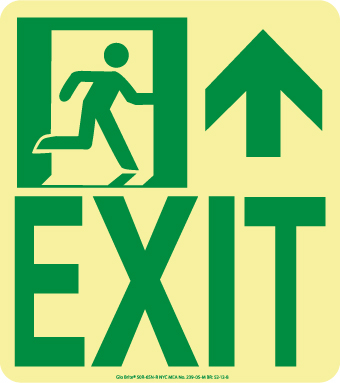NMC - National Marker Company Nyc Wall Mount Exit Sign, Forward/Right Side, 9X8, Flex, 7550 Glo Brite, Mea Approved 7550 Glo Brite Markings Glow strips and markings provide immediate visibility in sudden blackout situations. Unsurpassed in reliability, glow strips and markings require no mechanical or electrical power source.