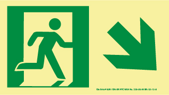 - Visibility: the emergency exit sign shows a running man and a down right arrow graphic in contrasting colors to ensure easy visibility from a distance. The glow polyester film makes the sign visible even in the dark
