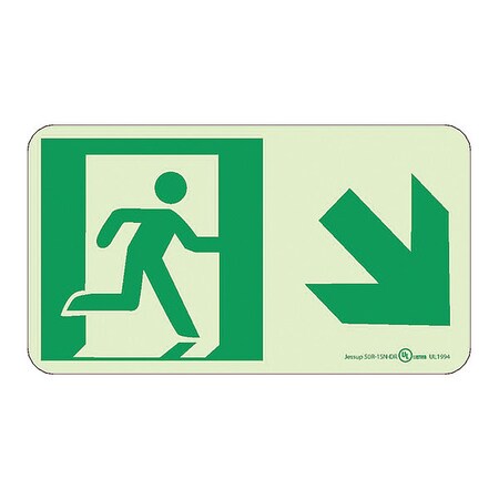NMC 50R-1SN-DR 7550 Glo Brite Nyc Directional Rigid Glow Sign with Down Right Graphic, 8" Length x 4-1/2" Height, Green on Pale goldenrod