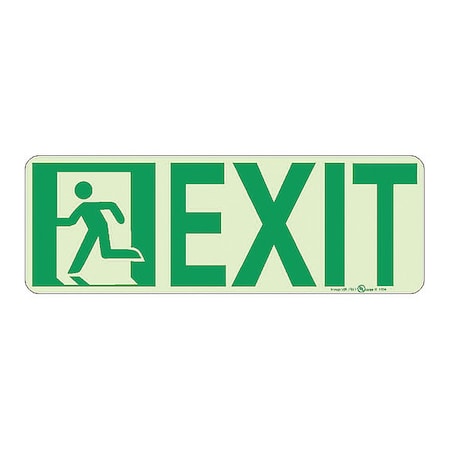 - Visibility: the sign shows the “left side stick figure in doorway” graphic along with the legend “EXIT” in contrasting colors to ensure easy visibility from a distance. The glow polyester film makes the sign visible even in the dark
