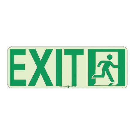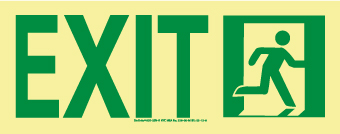 - Visibility: the sign shows the “right side stick figure in doorway” graphic along with the legend “EXIT” in contrasting colors to ensure easy visibility from a distance. The glow polyester film makes the sign visible even in the dark