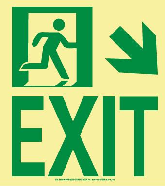 NMC - National Marker Company Nyc Wall Mont Exit Sign, Down Right, 9X8, Rigid, 7550 Glo Brite, Mea Approved 7550 Glo Brite Markings Glow strips and markings provide immediate visibility in sudden blackout situations. Unsurpassed in reliability, glow strips and markings require no mechanical or electrical power source.
