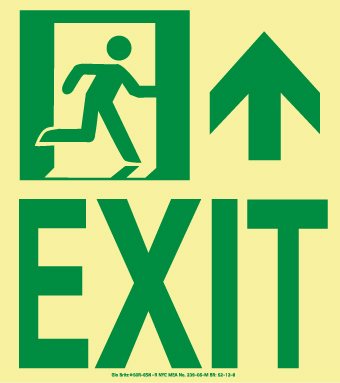 NMC - National Marker Company Nyc Wall Mont Exit Sign, Forward/Right Side, 9X8, Rigid, 7550 Glo Brite, Mea Approved 7550 Glo Brite Markings Glow strips and markings provide immediate visibility in sudden blackout situations. Unsurpassed in reliability, glow strips and markings require no mechanical or electrical power source.