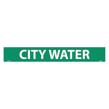 NMC A1053G Pipe Marker, Legend "City Water", 14" Length x 2" Height, 1-1/4" Letter Size, Pressure Sensitive Vinyl, White on Green (Pack of 25)