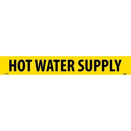 NMC A1138Y Pipemarkers Sign, Legend"HOT Water Supply", 14" Length x 2" Height, 1-1/4" Letter Size, Pressure Sensitive Vinyl, Black on Yellow (Pack of 25)