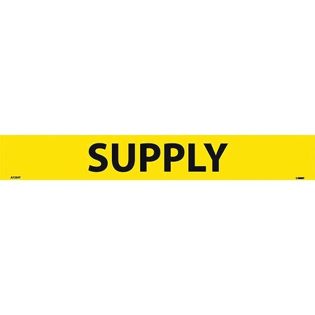 NMC A1254Y Pipemarkers Sign, Legend "Supply", 14" Length x 2" Height, 1-1/4" Letter Size, Pressure Sensitive Vinyl, Black on Yellow (Pack of 25)