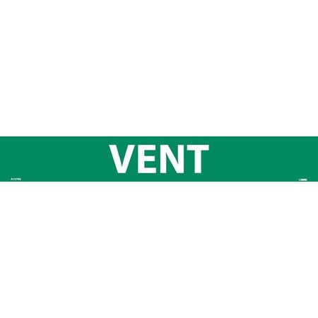 NMC A1270G Pipemarkers Sign, Legend"Vent", 14" Length x 2" Height, 1-1/4" Letter Size, Pressure Sensitive Vinyl, White on Green (Pack of 25)
