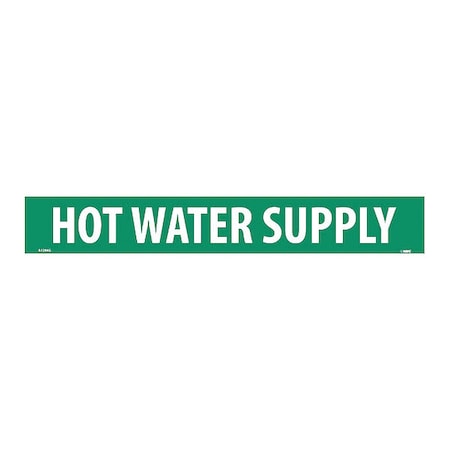 NMC A1294G Pipemarkers Sign, Legend "HOT Water Supply", 14" Length x 2" Height, 1-1/4" Letter Size, Pressure Sensitive Vinyl, White on Green (Pack of 25)