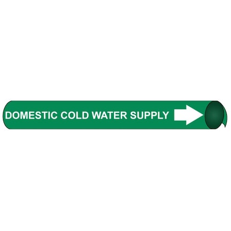 NMC A4036"Domestic Cold Water Supply" Precoiled Pipe Marker, Fits 3/4"-1" Pipe, White/Green