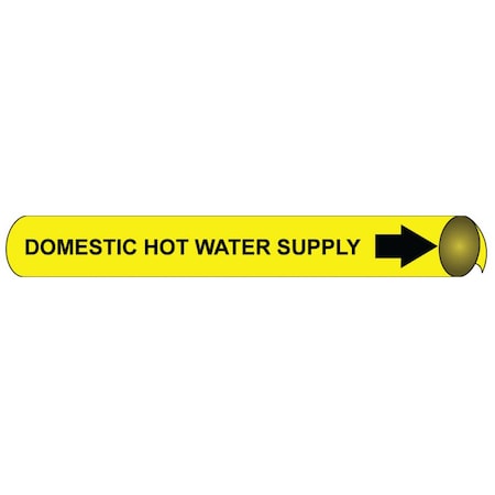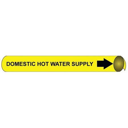 NMC A4038"Domestic Hot Water Supply" Precoiled Pipe Marker, Fits 3/4"-1" Pipe, Black/Yellow