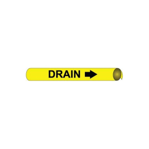 NMC A4040"Drain" Precoiled Pipe Marker, Fits 3/4"-1" Pipe, Black/Yellow