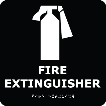 NMC - National Marker Company Ada, Brialle, Fire Extinguisher, Black, 8X8 ADA Braille Signs Comply with ADA requirements concerning the marking of permanent rooms and spaces with these Grade II Braille signs.