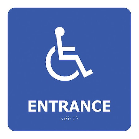 Nmc Ada-Compliant Braille Signs - 8X8" - Entrance With Handicap Symbol - Blue