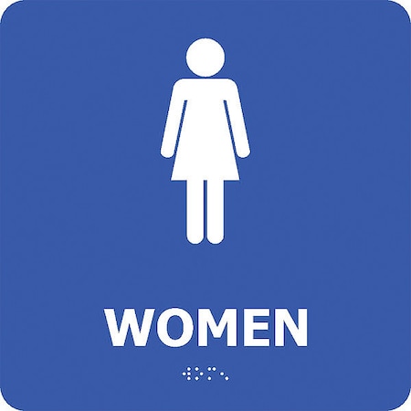 Nmc Ada-Compliant Braille Signs - 8X8" - Women Symbol - Blue - Blue