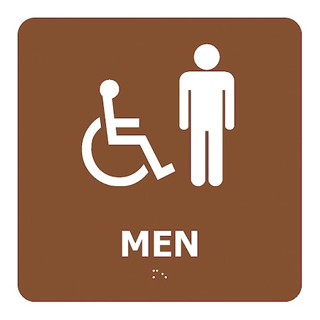 NMC ADA4WBR National Marker ADA Braille Sign, Men (with Handicap Symbol), BRN, 8 Inches x 8 Inches