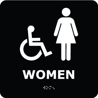 Nmc Ada-Compliant Braille Signs - 8X8" - Women With Handicap Symbol - Black - Black