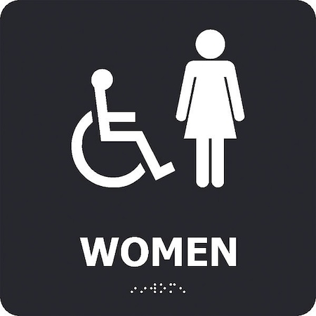 NMC ADA5WBK National Marker ADA Braille Sign, Women (with Handicap Symbol), Black, 8 Inches x 8 Inches