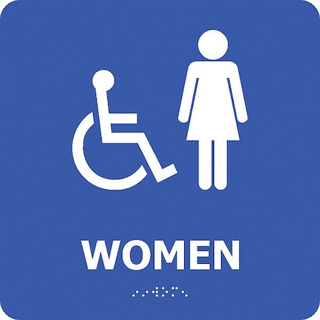 Nmc Ada-Compliant Braille Signs - 8X8" - Women With Handicap Symbol - Blue - Blue
