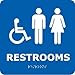 NMC ADA9WBL RESTROOMS Braille ADA Sign - 8 in. Square Sign - Plastic Sign with Handicap Symbol, Man, Woman Graphic, White Text on Black Base