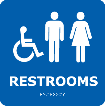 NMC - National Marker Company Ada, Braille, Restrooms (w/Handicap Symbol), Blue, 8X8 ADA Braille Signs Comply with ADA requirements concerning the marking of permanent rooms and spaces with these Grade II Braille signs.