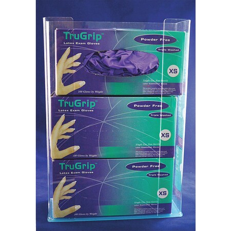 - Specifications: this acrylic holder measures 10.75 in. x 15 in. Each pack contains a set of 3 dispensers. Gloves sold separately