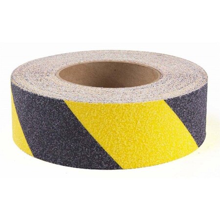- Product Specifications: the anti-skid tape measures 2 in. wide and 60 ft. long. This black and yellow striped tape has proven durability for commercial and industrial applications