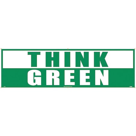 NMC BT36 Motivational and Safety Banner, Legend "THINK GREEN", 120" Length x 36" Height, Vinyl, White on Green