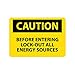 | Feature | Header "CAUTION" and legend "BEFORE ENTERING LOCK OUT ALL ENERGY SOURCES" |