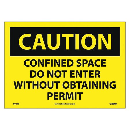 NMC C440PB OSHA Sign, Legend "CAUTION - CONFINED SPACE DO NOT ENTER WITHOUT OBTAINING PERMIT", 14" Length x 10" Height, Pressure Sensitive Adhesive Vinyl, Black on Yellow