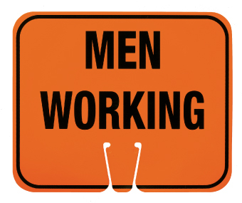 NMC - National Marker Company Safety Cone Signs, Men Working, 10.375 X 12.625 Safety Cone Signs Safety Cone Signs make installing temporary signage quick and easy. Specially designed cut grooves allow you to slip the sign right onto the top of the cone.