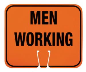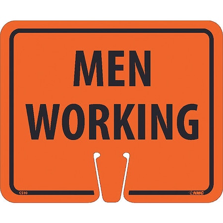 NMC CS10 Men Working Sign – 12.63 in. x 10.38 in. Plastic Traffic Cone Sign with Black Text on Orange Base