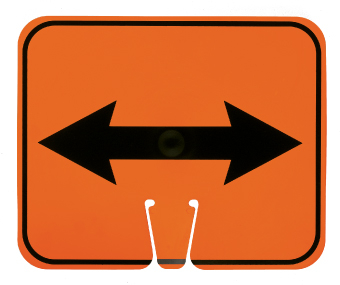 - Specifications: this rectangular plastic traffic cone sign 12.63 in. wide and 10.38 in. high. It features the double arrow graphic printed in black over an orange base