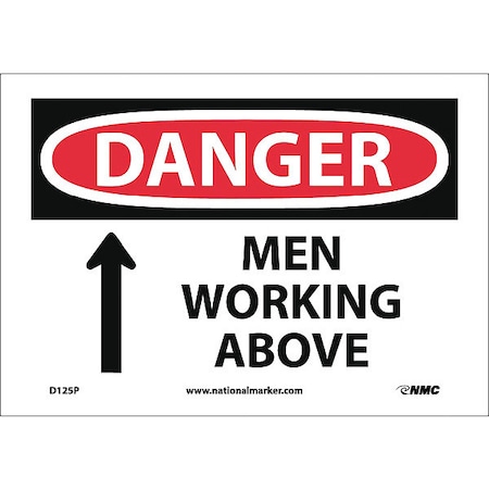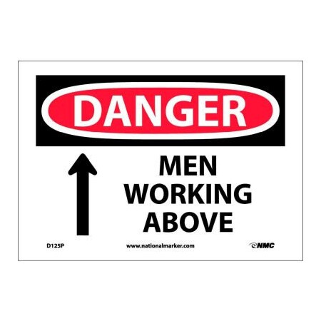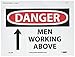 NMC D125P DANGER - MEN WORKING ABOVE - 10 in. x 7 in. PS Vinyl Danger Sign with Graphic, White/Black Text on Red/ White Base