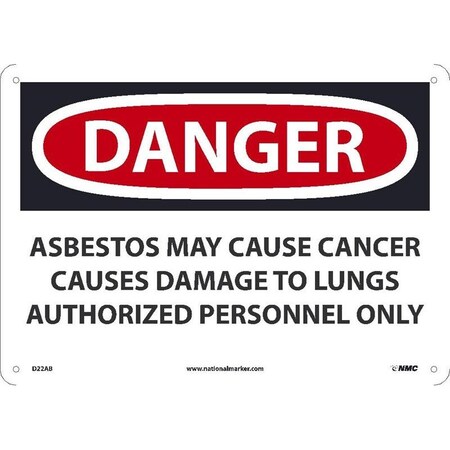 NMC D22A National Marker Danger Asbestos Sign -May Cause Cancer Causes Damage to Lungs Authorized Personnel Only, 7 Inches x 10Inches, 040 ALUM