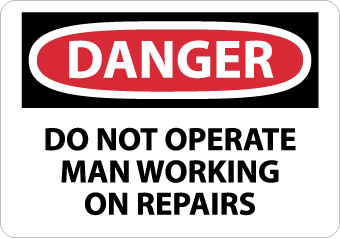 | Feature | Header "DANGER" and legend "DO NOT OPERATE MAN WORKING ON REPAIRS" |