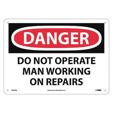 NMC D430RB OSHA Sign, Legend "DANGER - DO NOT OPERATE MAN WORKING ON REPAIRS", 14" Length x 10" Height, Rigid Plastic, Black on White