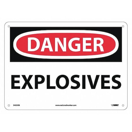 NMC D435RB OSHA Sign, Legend "DANGER - EXPLOSIVES", 14" Length x 10" Height, Rigid Plastic, Black/Red on White