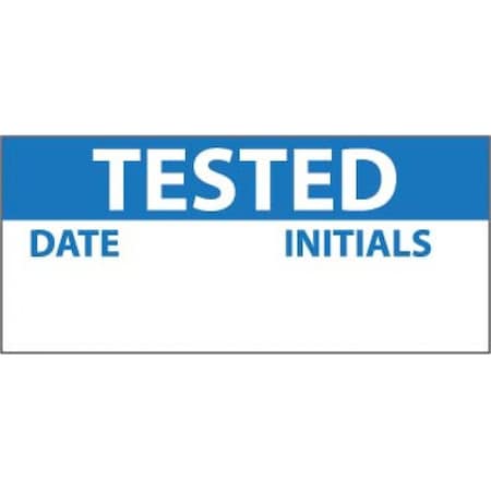 NMC INL11 Inspection Label, Legend"Tested", 2-1/4 Length x 1" Height, Pressure Sensitive Vinyl, Blue on White (Pack of 27)