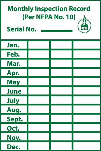 - Safety Label: such labels are often used in both residential and commercial buildings to document monthly inspection details related to fire safety equipment in accordance with NFPA No. 10