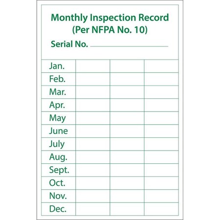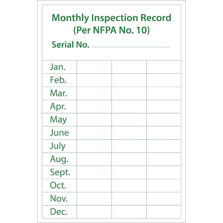 - Visibility: this label has the legend “MONTHLY INSPECTION RECORD” in bold letters and contrasting colors to ensure clear visibility in most lighting conditions