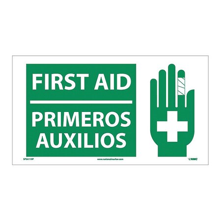 NMC National Marker Corp. SPSA119P First Aid (Bilingual W/Graphic), 10 Inch X 18 Inch, PS Vinyl