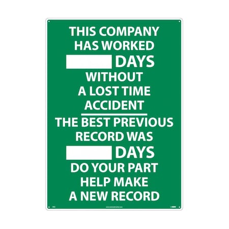 NMC WS2 THIS COMPANY HAS WORKED ___ DAYS WITHOUT A LOST TIME ACCIDENT Scoreboard - 20 in. x 28 in. Aluminum Safety Sign,Green