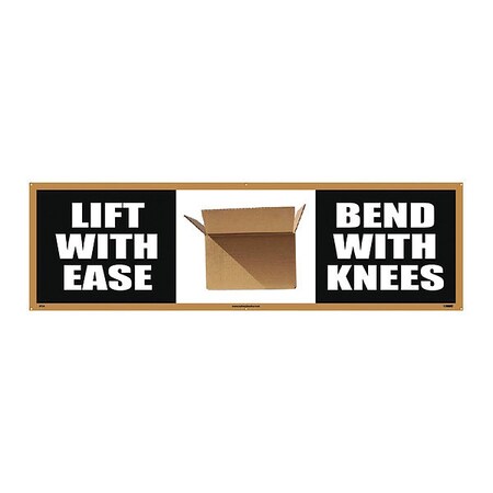 NMC BT26 Motivational and Safety Banner, Legend "LIFT WITH EASE BEND WITH KNEES", 120" Length x 36" Height, Vinyl, Brown/Black on White